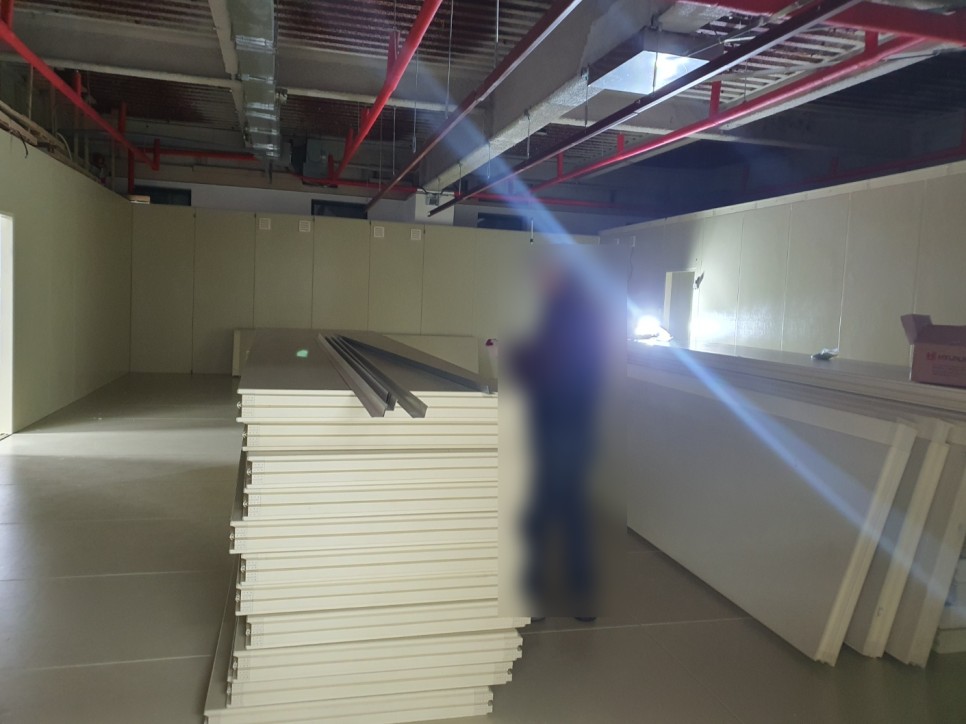 공사 둘째날 냉장창고, 냉동창고 설치하고 있습니다.