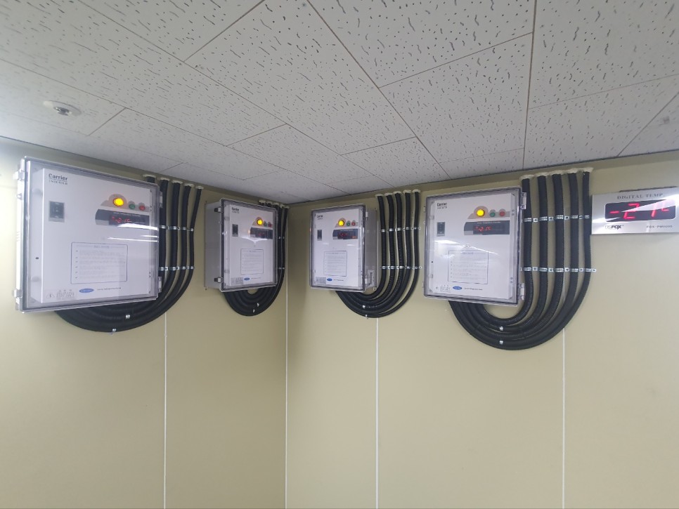 다시한번 용접으로 이어지는 이음새 부분을 재차 확인하여 혹시나 발생할 수 있는 냉매의 누설이나 배관의 접히거나 눌려서 생기는 막힘 현상이 없는지 재차 확인하고 완벽하게 냉장, 냉동의 기능을 다하는지 냉장창고(0도), 냉동창고(-20도)의 적정온도까지 떨어지는지 시운전합니다.